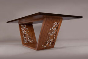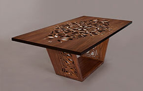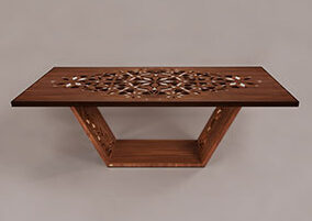 Dining Table in combination of light and dark walnut wood, top is styled with Mother of Pearl and veneer inlay. Dimension : L2200xW1100xH750 mm